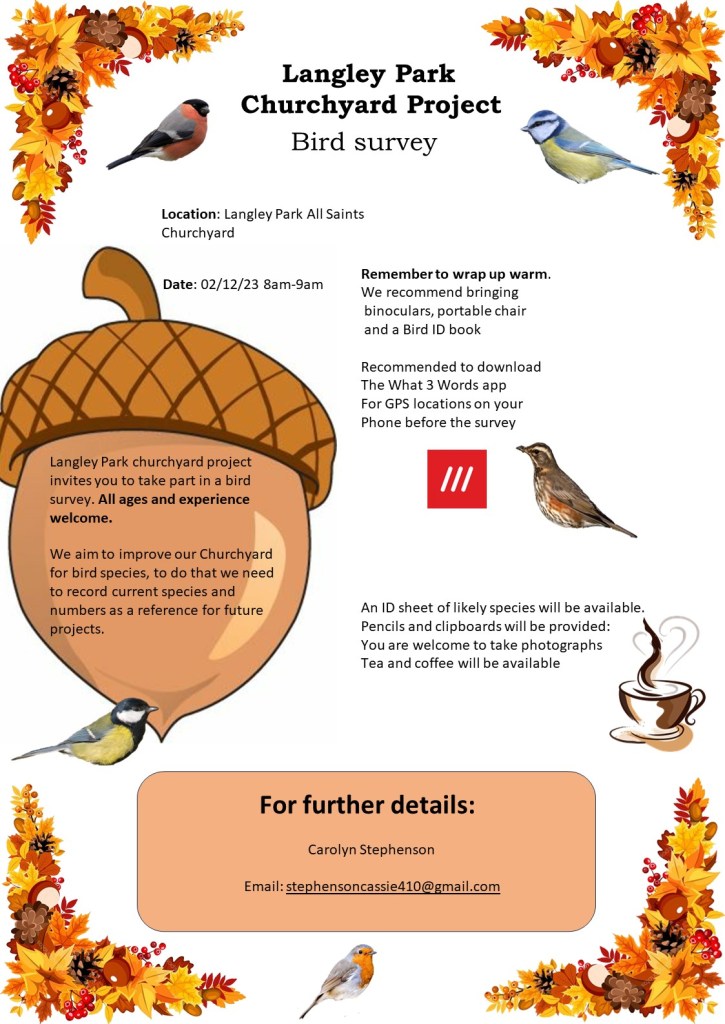 In the weeks from 05/02/24 to 19/02/24, I had a meeting with the head Durham ecologist to discuss the mowing regime with other churches. Additionally, I had a chat with a member of the Durham Wildlife Trust who is working on a project with churches and is a bat ecologist. Exciting news – she’s providing us with more equipment (guess I’ll need to update the risk assessment), and there’s a possibility that I’ll receive training in using a scythe and leading a bat walk and processing data. Busy times! I’ve also been mapping the churchyard to prepare for other feeding areas and squeezing in an online volunteering course in the background.