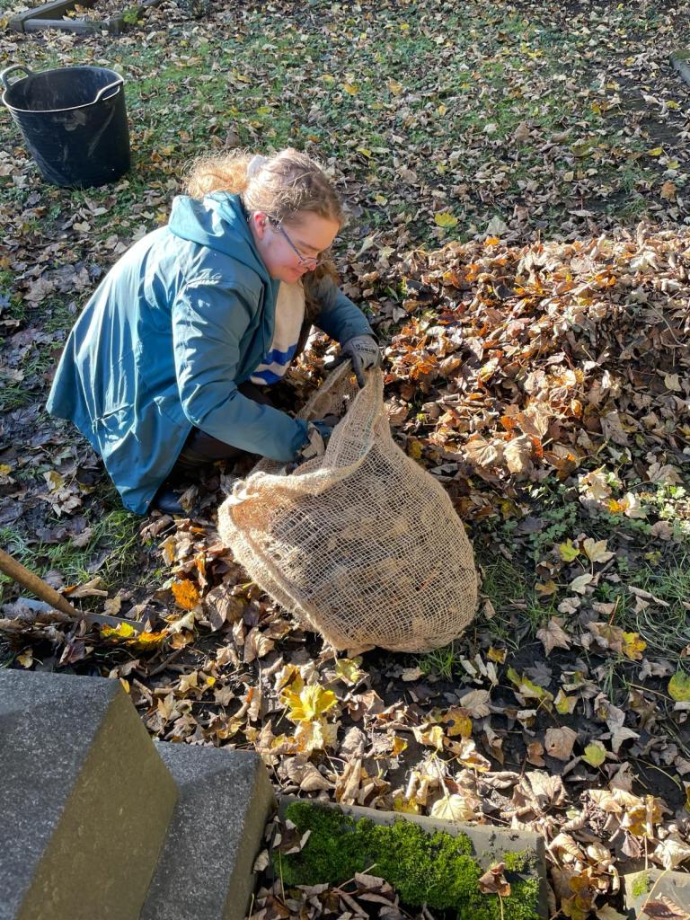 As Remembrance Sunday approached, we decided to do something special for the grave of the unknown soldier. We wanted it to stand out and be more accessible. On a different note, November is when our hedgehogs get ready to hibernate. To help them, we built a leaf pile in a way that the leaves wouldn’t blow away. We used biodegradable leaf sacks for this. I got some positive feedback because I was the one who raked all the leaves around the grave of the unknown soldier, making it easier to reach. I’ve also noticed more wreaths left there, so it seems like people are still visiting.